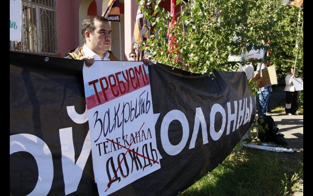 "Телеканал "Дождь" вещает и наполняет ложью и провокациями информационное поле России. Именно здесь они реализуют планы Госдепа направленные против нашей страны и нашего народа. Нельзя быть равнодушным к этому", - заявили пикетчики.