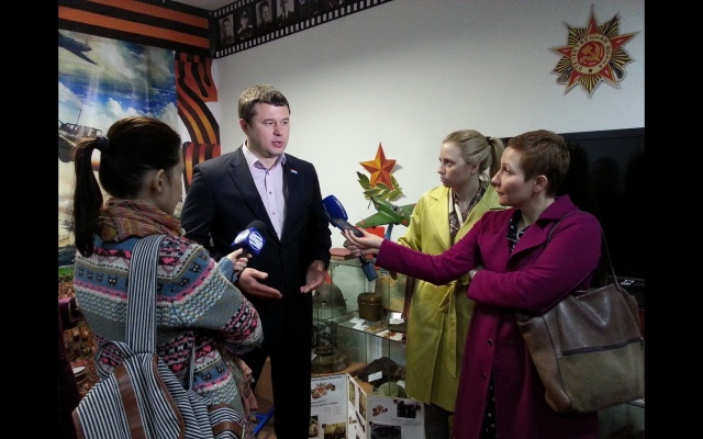 Перед началом открытого урока депутат Думы городского округа Самара, заместитель председателя регионального отделения партии "РОДИНА" Валерий Барсук посетил школьный Музей боевой славы 6-го Гвардейского Дважды Краснознаменного Севастопольского истребительного авиационного полка, выступил перед учащимися старших классов.