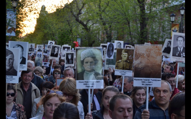 Саратовцы прошли с портретами в руках по проспекту Кирова до Театральной площади. На фотографиях, которые несли участники акции наши деды, прадеды, те, которые завоевали Великую Победу. Это герои и просто солдаты которые отдали свои жизни освобождая нашу землю от фашистских захватчиков. На фото тысячи лиц, которые погибли или выжили на войне, победив фашизм, Акция "Бессмертный полк" еще раз показала огромную любовь нашего народа к одной для всех Родине и святую память тем, кто завоевал Победу.