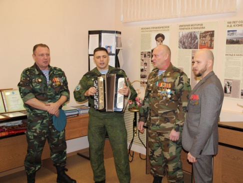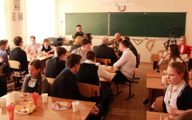 Урок мужества проходил в школьном музее "Возрождение", который с трудом вмещал всех желающих. Представители Самарского регионального отделения партии "РОДИНА" рассказали старшеклассникам о том, каким стало теперь Рязанское гвардейское высшее воздушно-десантное ордена Суворова дважды Краснознамённое командное училище имени генерала армии В.Ф. Маргелова, о боевых спецоперациях и мирных буднях ВДВ, о выпускниках училища, ставших героями, и еще о многом другом. Ветераны спецназа ответили на интересующие ребят вопросы и, под аккомпанемент баяна, исполнили песни о ВДВ и о родном для всех десантников училище. Потом в одном из школьных классов было сладкое чаепитие, которое тоже не обошлось без песен.